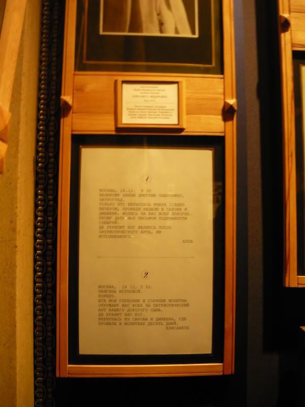 Aug. 16th, 2012 06:11 pmНо она не упомянула о телеграммах нашей святой Елисаветы Великому князю Дмитрию Павловичу и матери Феликса Юсупова в ответ на известное событие, но поскольку эти телеграммы висели там на стенке, я их пересняла.