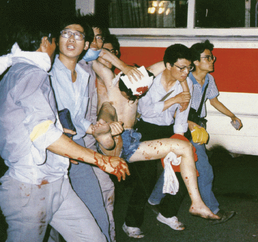 4 июня 1989, 12:30 утра - Госпитали в Мусиди и Фусинмэнь (западный Пекин) испытывают наплыв жертв стрельбы
