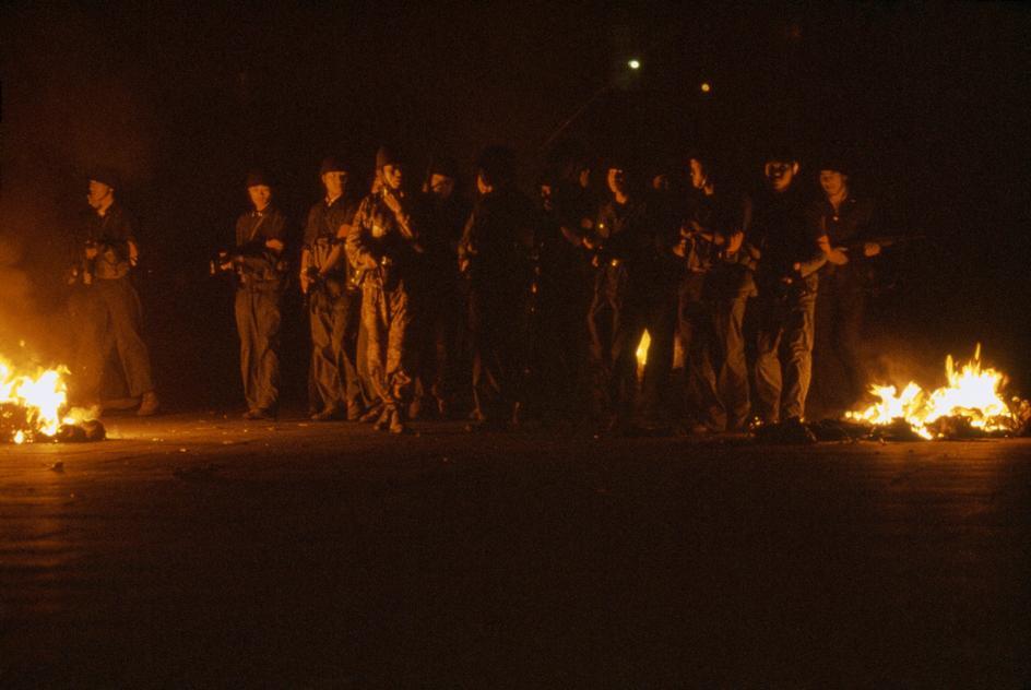 4 июня 1989, 10:45 утра - Протестующие в Мусиди требуют, чтобы солдаты покинули застрявшую колонну военных машин