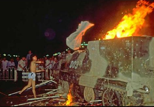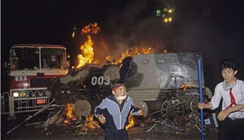 4 июня 1989, 4:00 утра - Командира взвода Лю Гогэна линчевали и сожгли в Сидане за то, что он предположительно застрелил 4 случайных наблюдателей