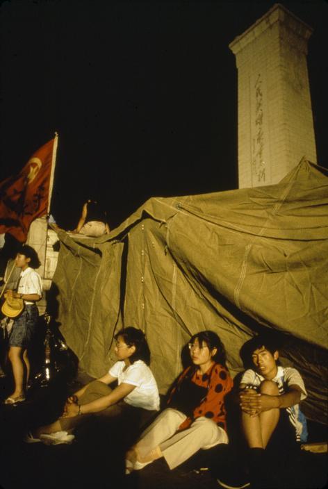 4 июня 1989, 1:00 утра - Люди, собравшиеся на площади Тяньаньмэнь, прислушиваются к треску приближающейся стрельбы
