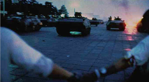 4 июня 1989, 5:15 утра - БТРы движутся на оставшуюся группу из 200 студентов, не захотевших покинуть площадь Тяньаньмэнь