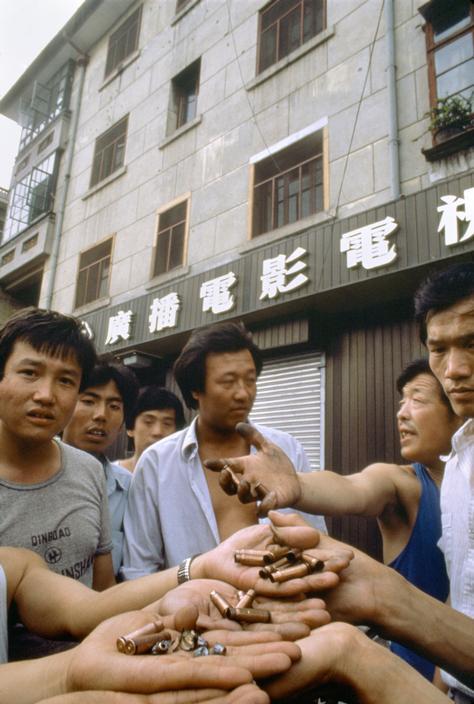 4 июня 1989, 6:00 утра - Жители Пекина показывают гильзы после боя предыдущей ночи