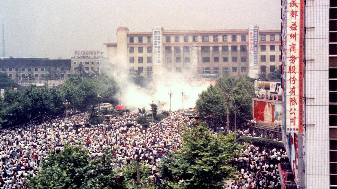 4 июня 1989, 10:00 утра - Полиция в Чэнду использует слезоточивый газ, чтобы разогнать марш студентов на Народной площади